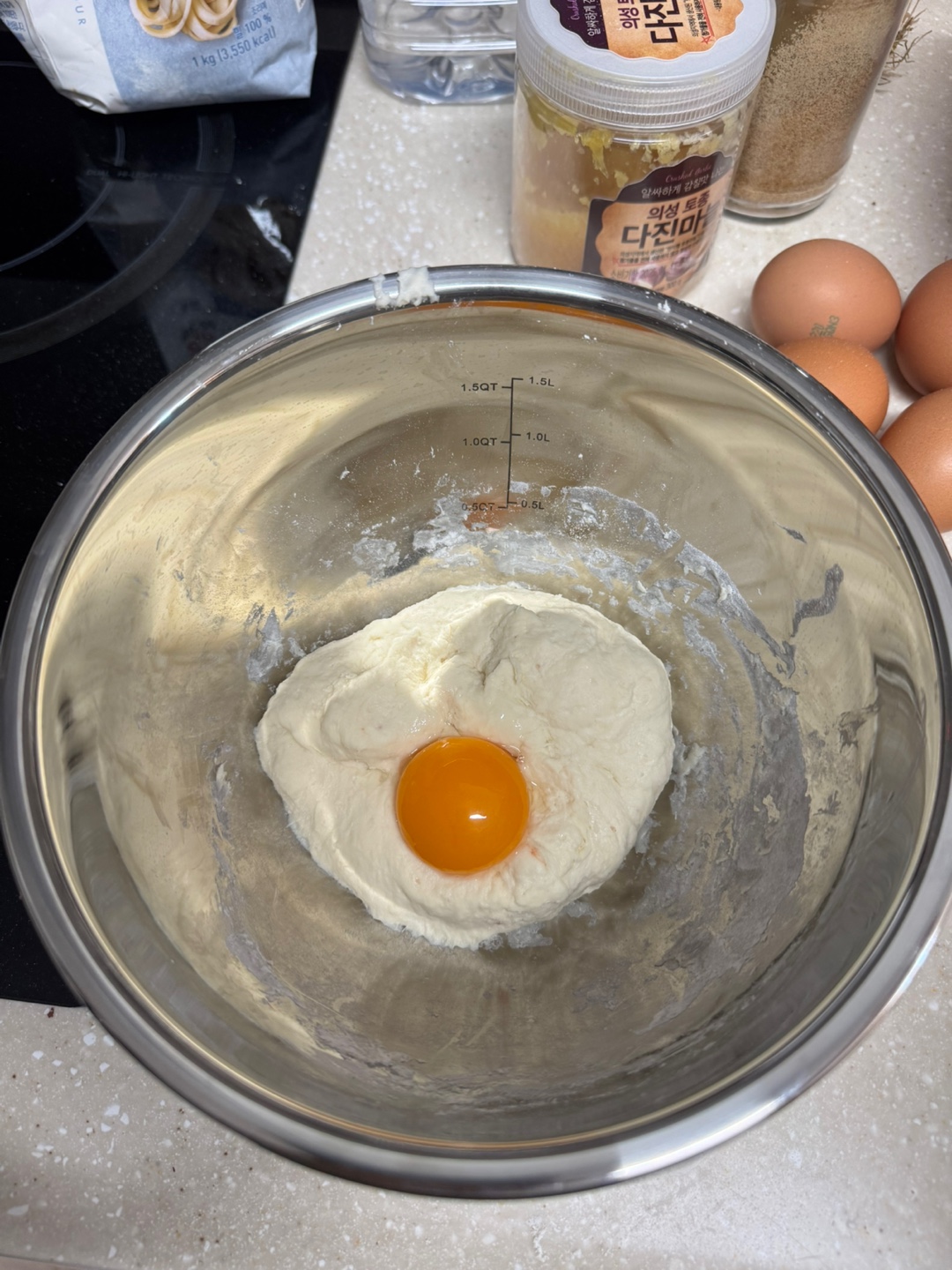 - 식용유 추가하여 매끄럽게 반죽하기: 반죽이 한 덩어리로 뭉쳐지면 식용유를 넣고 다시 주물러줍니다. 식용유를 넣으면 반죽이 더 부드럽고 밀가루 특유의 텁텁함이 줄어듭니다.
