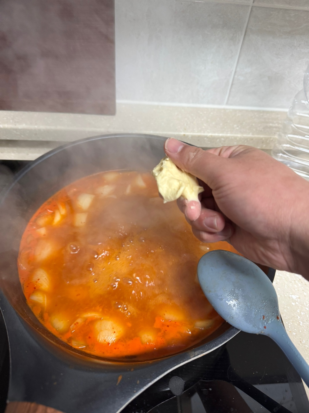 2. 채소 추가 : 감자, 당근, 애호박, 양파 등 원하는 채소를 넣고 한소끔 끓입니다.